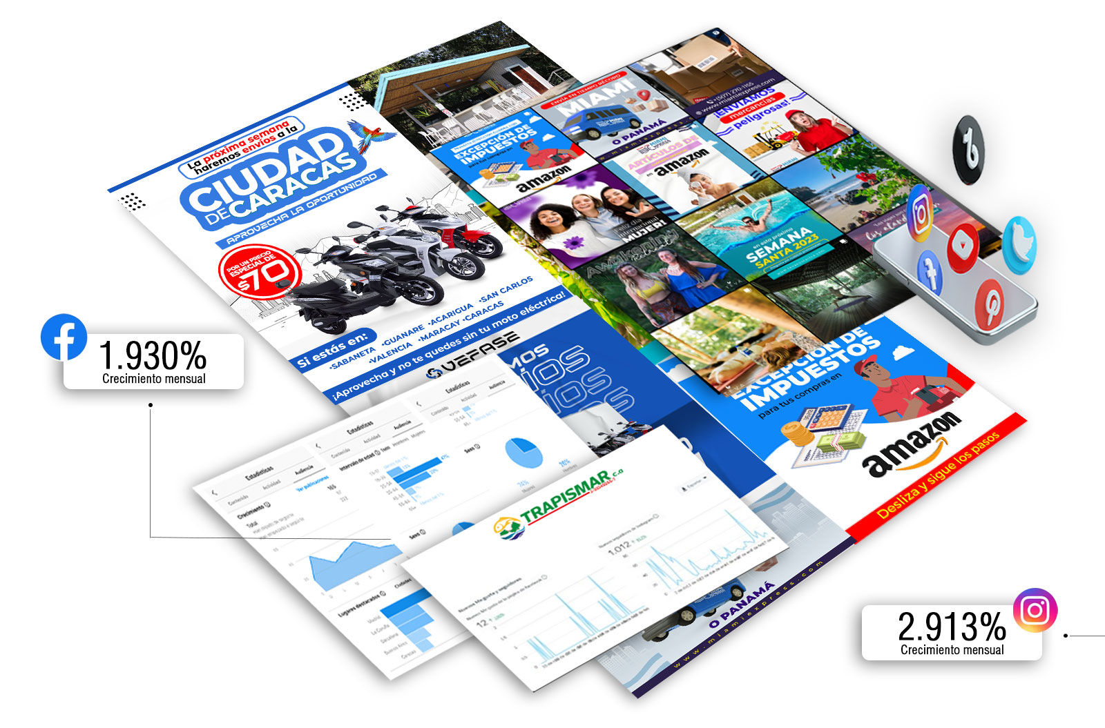 Manejo de redesSomos la Agencia ideal para la gestión de sus redes sociales en Miami. Nuestro equipo de Community Managers está altamente capacitado para crear y ejecutar estrategias efectivas que impulsarán la presencia en línea de su empresa. Confíe en nosotros para aumentar su alcance y mejorar su imagen de marca en las redes sociales.